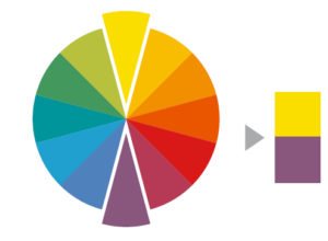 Doua culori aflate pe parti opuse ale rotii sunt considerate complementare, de exemplu galben si mov, sau rosu si verde. Contrastul puternic al acestor culori creeaza un aspect vibrant, dar poate provoca si oboseala vizuala, astfel ca ar trebui folosite cu moderatie.