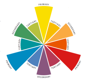 Rosu, albastru si galben, cele mai mari segmente de culoare din roata prezentata mai jos, sunt culori primare, din care deriva toate celelalte culori. Aceste trei nuante nu pot fi formate prin combinarea altor culori.